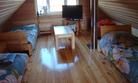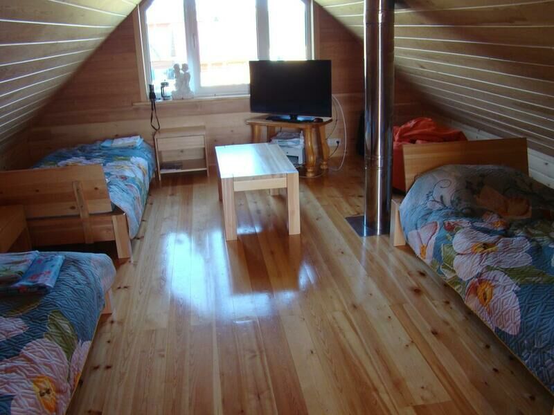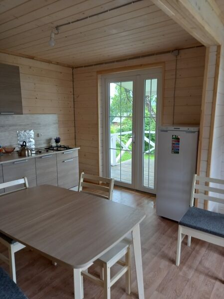 Дом 60 кв м с двумя спальнями. В доме: мини-кухня, терраса, телевизор с плоским экраном, санузел. В спальне на 2 этаже 3 односпальные кровати ,на 1 этаже в гостиной диван-кровать. Мини-кухня оснащена микроволновой печью, холодильником, плитой и чайником. Гостям предоставляются полотенца и постельное белье. Кроме того, на территории дома можно посещать сауну (за дополнительную плату) и пользоваться принадлежностями для барбекю.