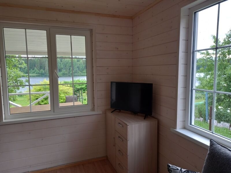 2 комнаты на 2-м этаже, кухня-гостиная на 1-м этаже, большая терраса 3х6м с видом на озеро. Крытый мангал. Участок 15 сот., огорожен. Баня с мостками в озеро за доп. плату. Лодка.