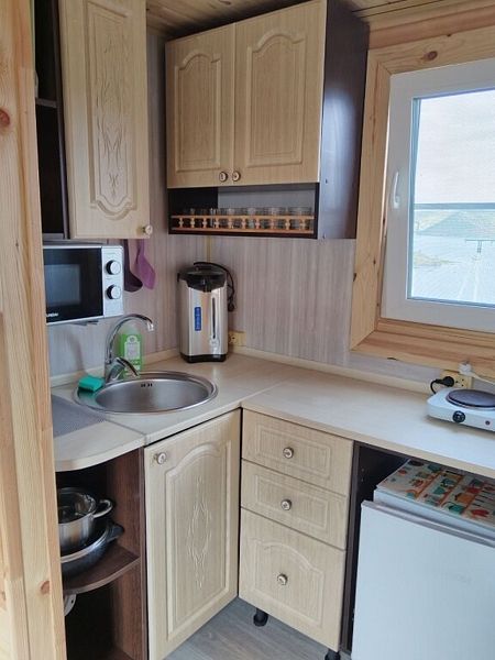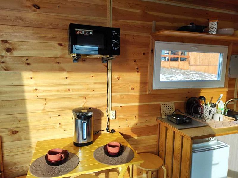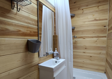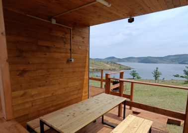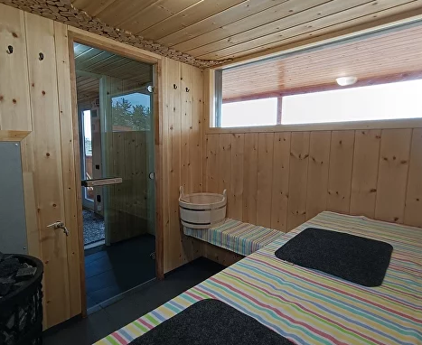 На территории глэмпинга можно заказать современную русскую баню. С парной открывается панорамный вид на залив. Вместимость рассчитана до 6 человек. Каждый гость обеспечивается полотенцем.