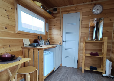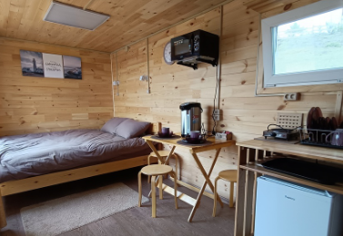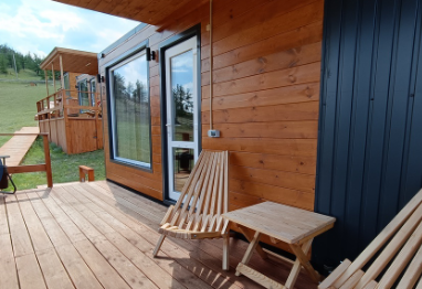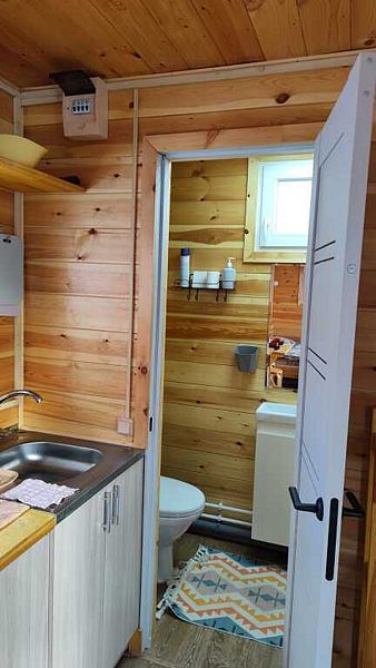 Двухкомнатный дом со всеми удобствами, террасой, откуда открывается прекрасный вид на озеро.