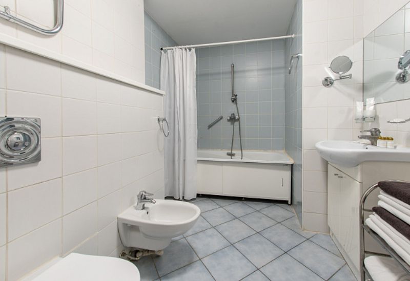 В прихожей: вешалка, зеркало. В комнате: две кровати, две прикроватных тумбочки, два стула, шкаф, телевизор, холодильник, два комплекта полотенец, две простыни для медицинских процедур. В ванной комнате: ванна, туалетные принадлежности (мыло, шампунь, гель для душа). Дополнительное место для детей 3 – 7 лет.