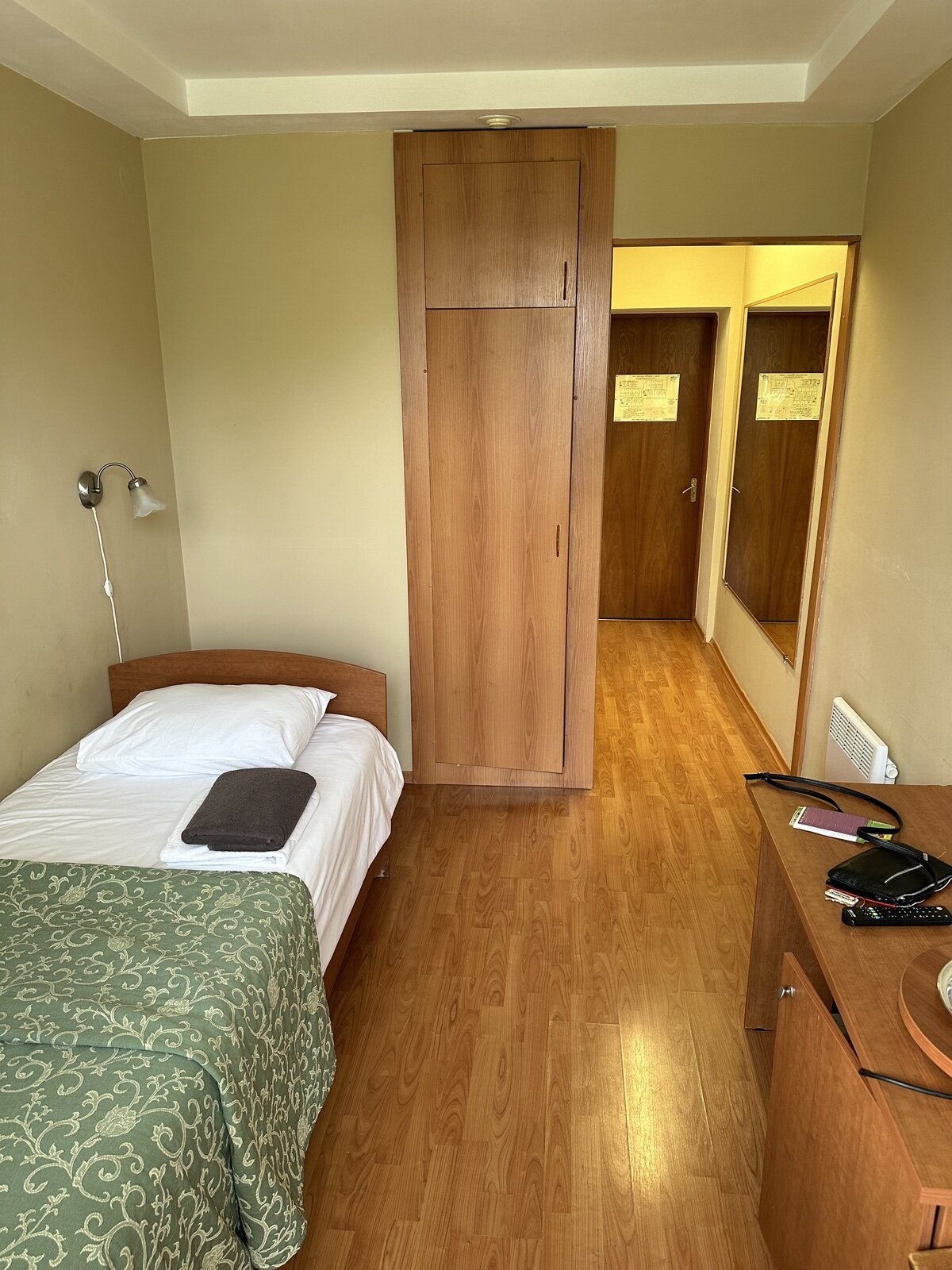 Номер первой категории состоит из одной жилой комнаты с одной стандартной кроватью и ванной комнаты с душевой кабиной. Рассчитан на проживание одного человека.