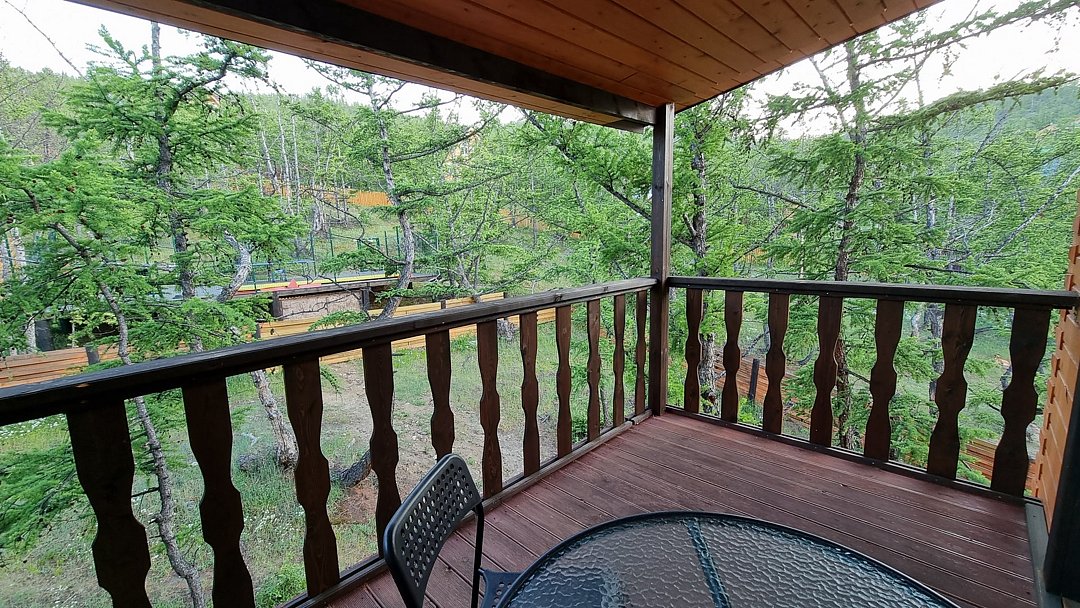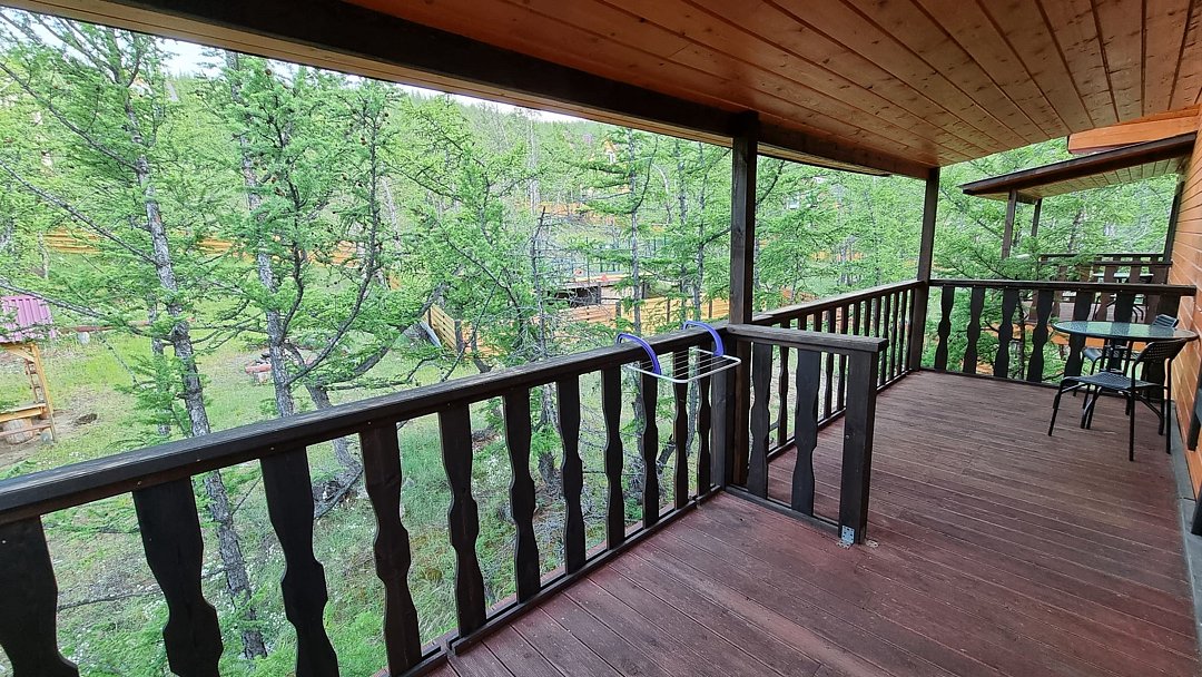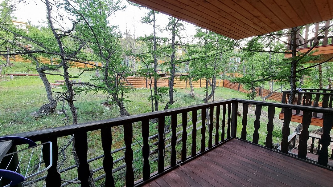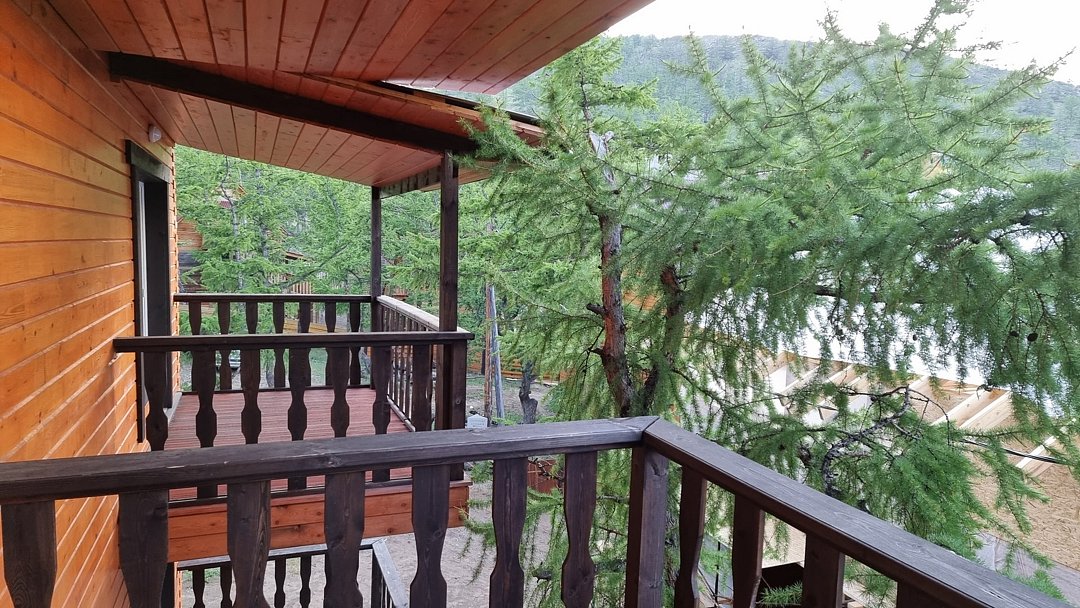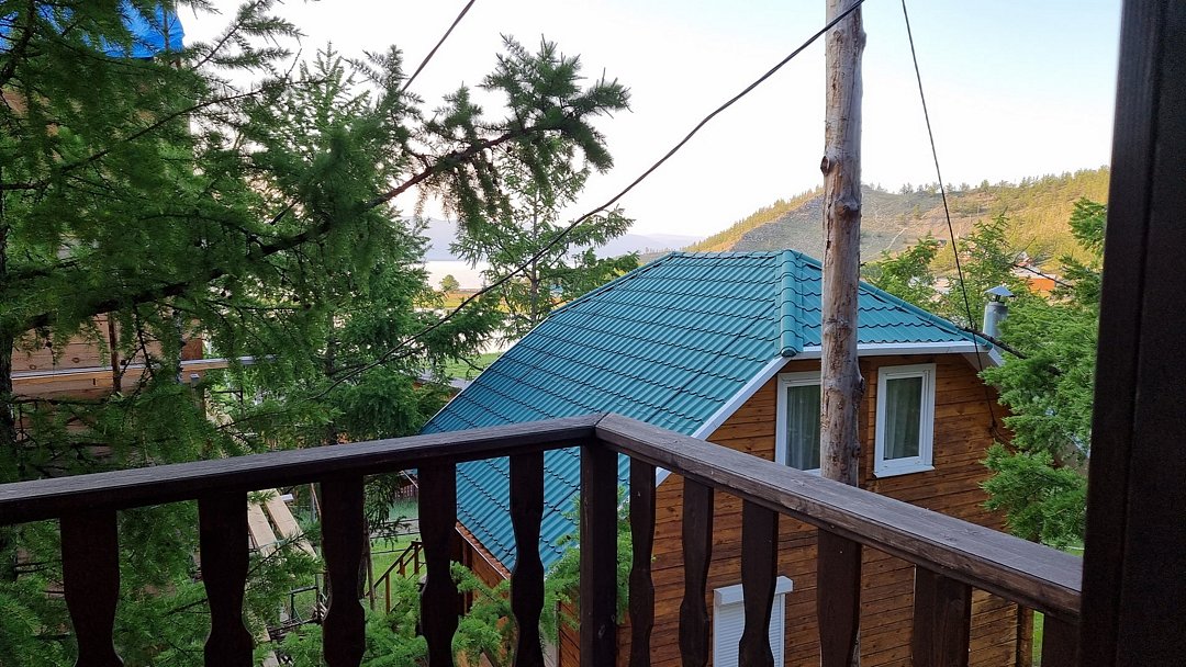 Гостевой дом находится в 500 метрах от о. Байкал. Берег бухты - песчаный. Вода в заливе, за счет относительно небольшой глубины, прогревается с самого начала лета и остается теплой вплоть до осени. На территории размещения гостевого дома, в отличие от многих иных бухт, повсюду произрастают реликтовые лиственницы, которые позволяют скрыться от солнца в жаркое время суток.