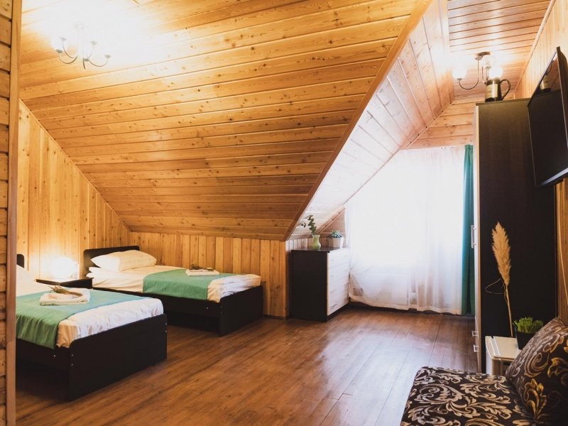 Однокомнатный стандартный номер с двумя раздельными кроватями и одноместным диваном.В номере
