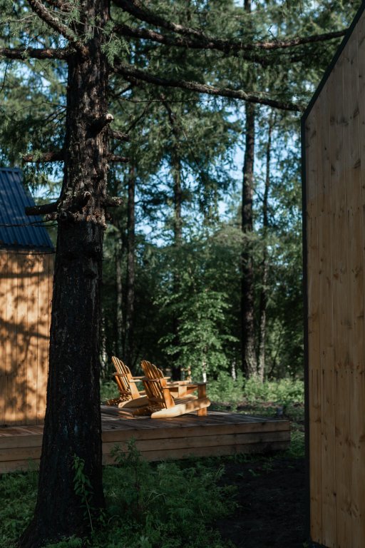 Инфраструктура: обливное ведро, душРусская баня подарит гостям возможность расслабиться и отдохнуть после насыщенного дня. Баня имеет свою открытую террасу и территорию, полностью оборудованную для идеального отдыха. Канатный мост на соседний островок и собственное озеро, в котором можно окунуться.