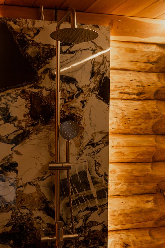 Русская баня подарит гостям возможность расслабиться и отдохнуть после насыщенного дня. Баня имеет свою открытую террасу и территорию, полностью оборудованную для идеального отдыха. Канатный мост на соседний островок и собственное озеро, в котором можно окунуться.