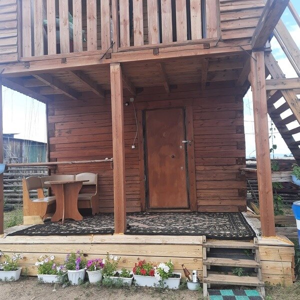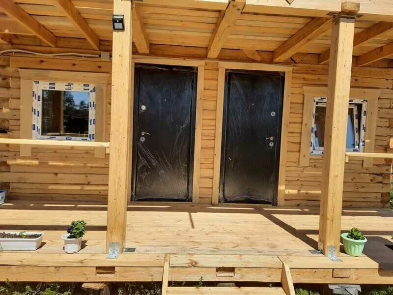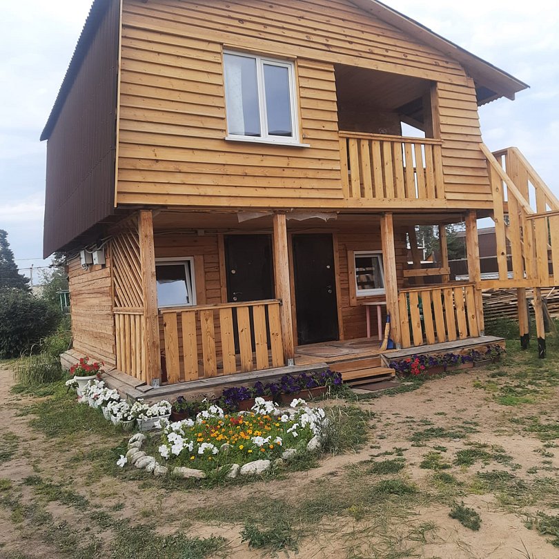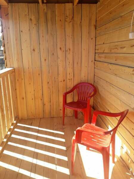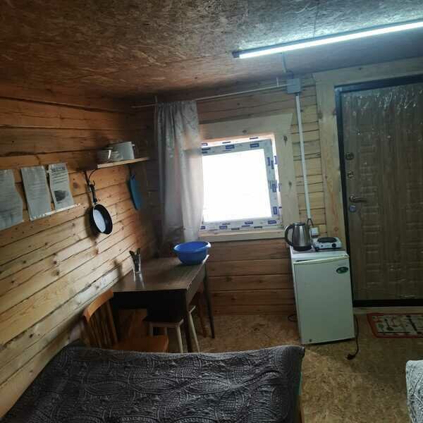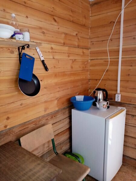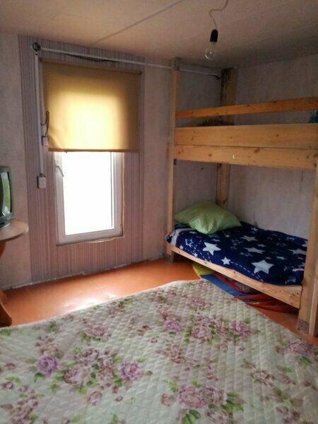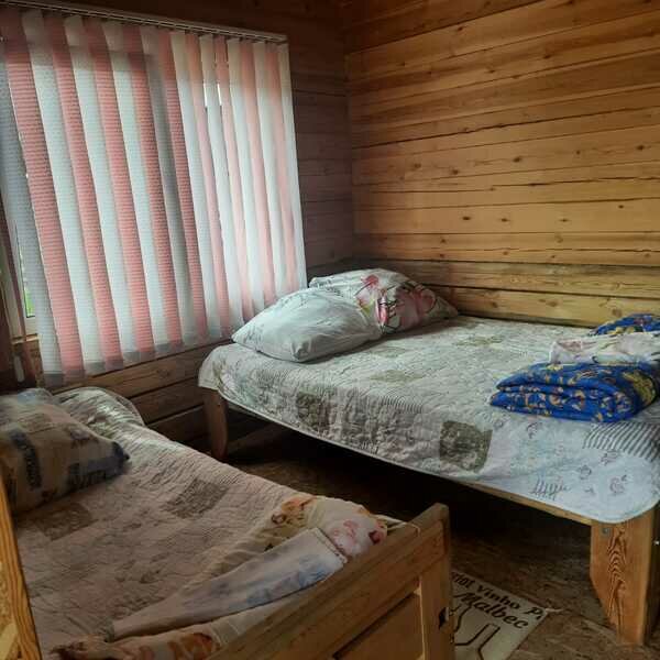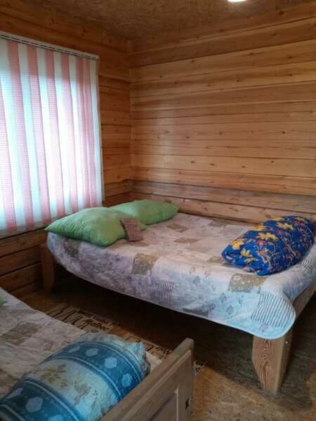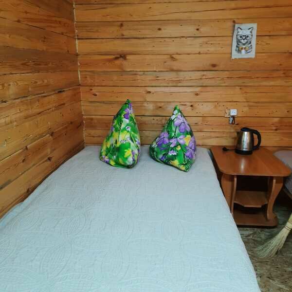 Номер на первом этаже двухэтажного деревяного коттеджа. В номере имеется: двухспальная кровать, односпальная кровать, холодильник, электрическая плита, чайник, набор посуды.