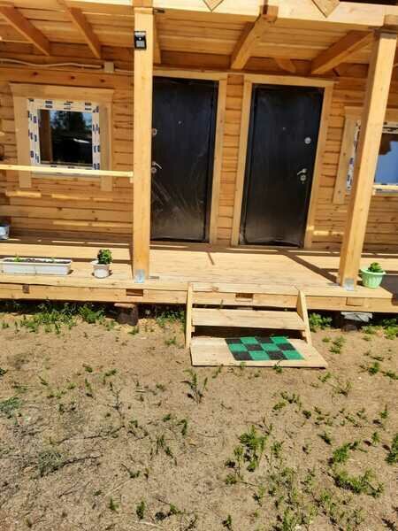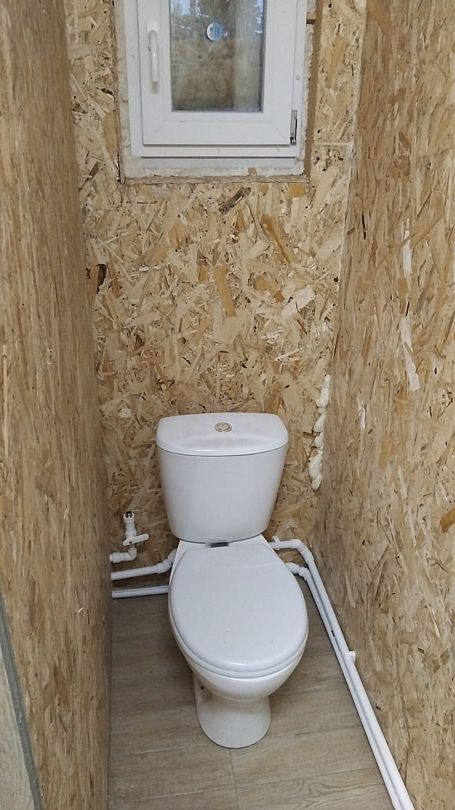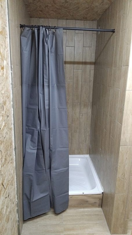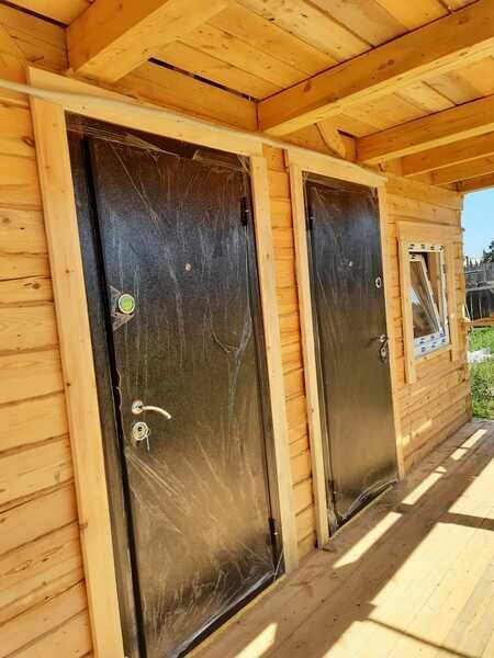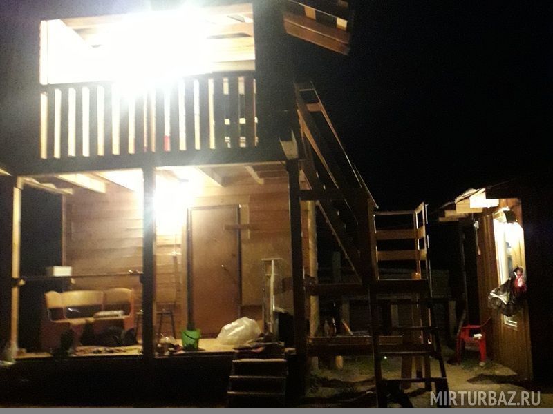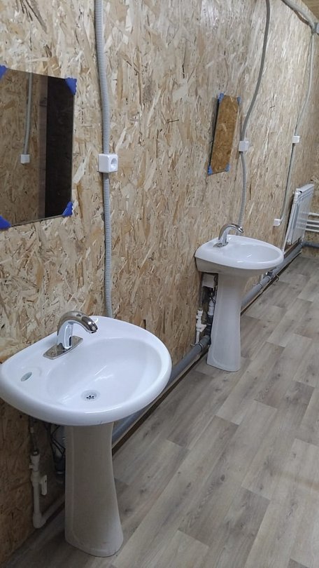 Благоустроенный су с горячим душем на территории в отдельно стоящем здании.