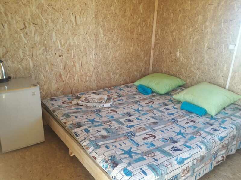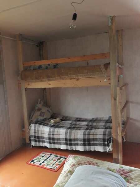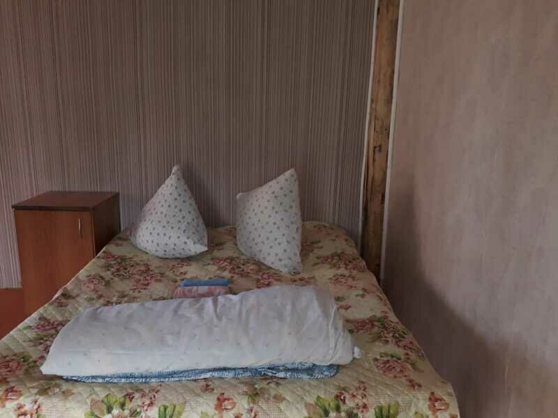 Комфортабельный номер в доме с отдельным входом. В номере двухспальная кровать и односпальная кровать стол, чайник и постельное белье.