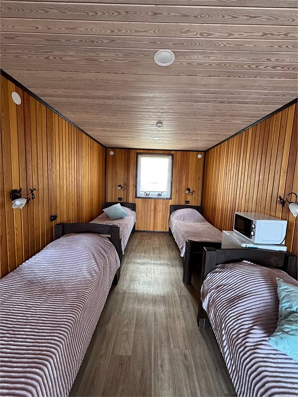 Комната 21 кв.м В четырёхместном номере предоставляется: •4 раздельных кровати •кухонные приборы (холодильник, чайник, микроволновка, телевизор(ТВ 20 каналов), посуда на 4 человека •4 комплекта постельного белья •4 полотенца •один санузел на два номераУслуги и удобства