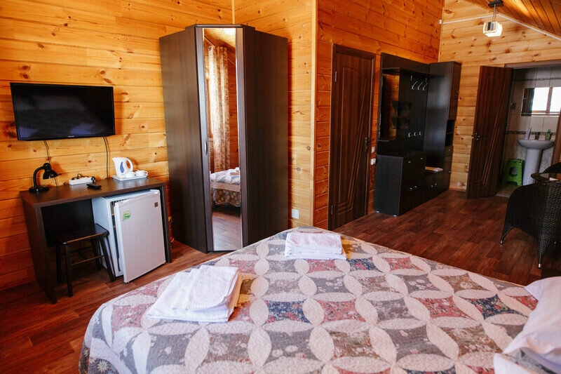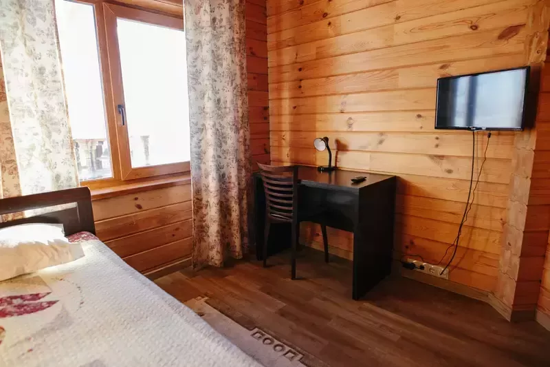 1 номер DBL, 2 номер SINGLE, душ, умывальник , унитаз, зеркало, фен для сушки волос, телевизор, мини-холодильник, стол, электрочайник, обогреватель.