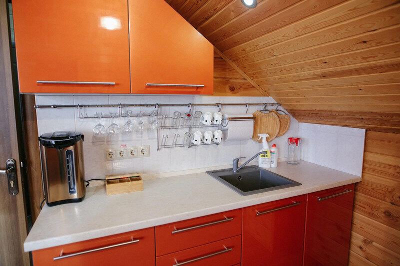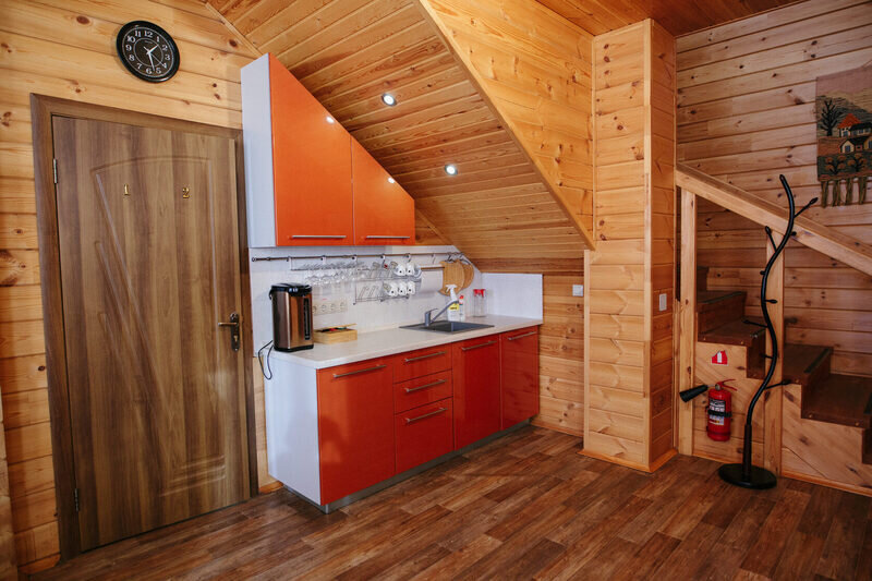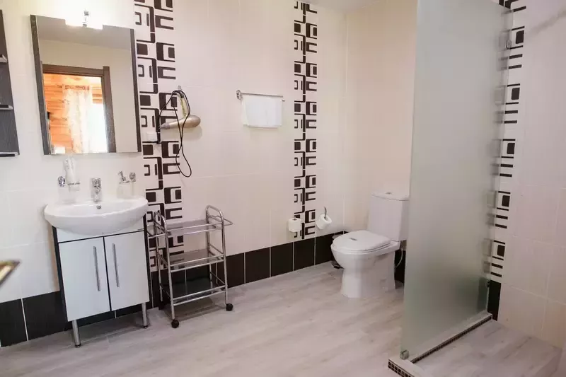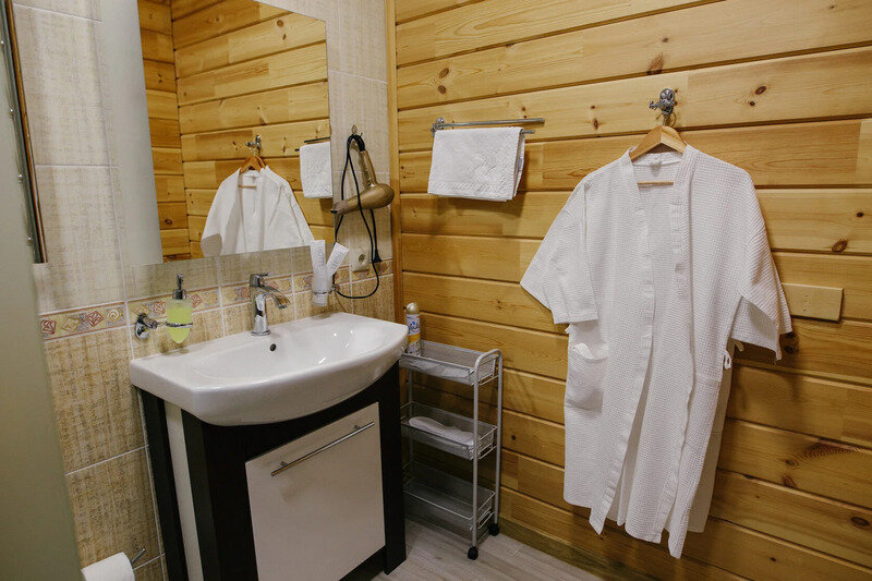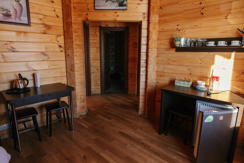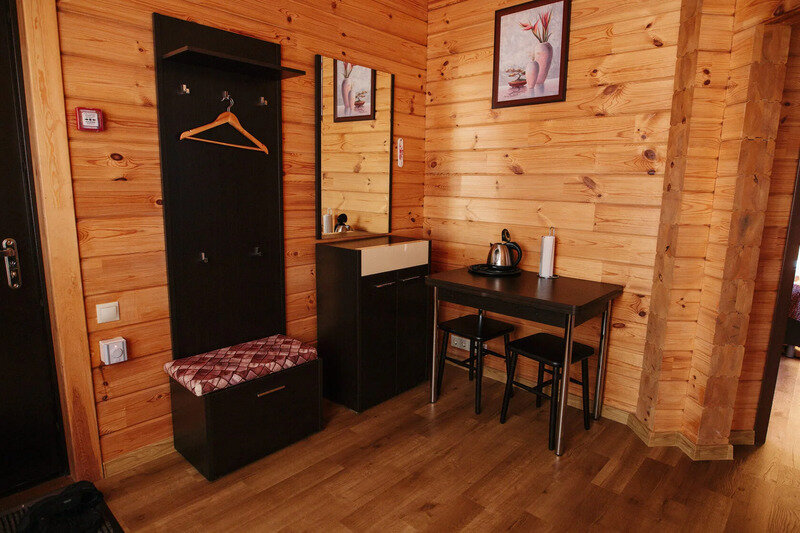 1 номер. DBL, 2 номер DBL, большой холл с телевизором и диваном, мини-бар (мини-холодильник), стол, электрочайник, душ, умывальник , унитаз, зеркало, фен для сушки волос, обогреватель.