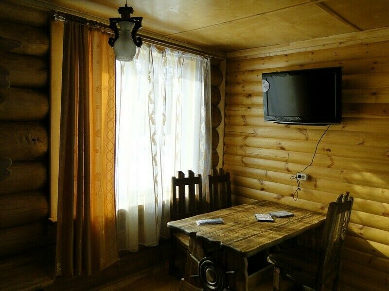 «В каждом номере имеются: спальня с двумя раздельными кроватями, бельевым шкафом, ванной комнатой (душевая кабина, туалет, раковина) и комната отдыха, также есть - телевизор, диван, стол, стулья. электрообогрев, камин.»