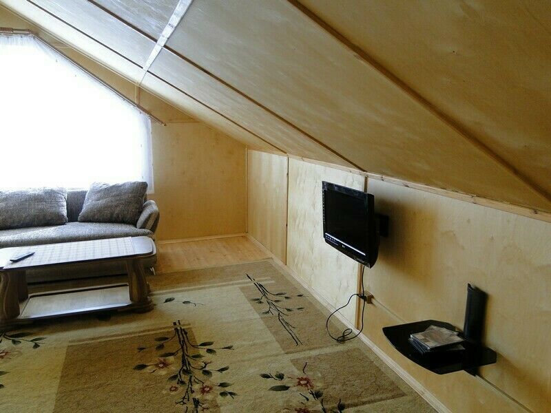 «В доме имеются спальня, с 2-спальной кроватью, ванной комнатой (душевая кабина, туалет. раковина), комната отдыха - диван, стол, стулья, печь. В доме - электрообогрев.»
