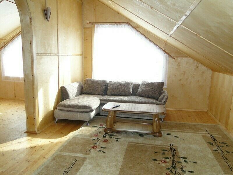 «В доме имеются: в каждой комнате 2-местная кровать, диван, стол, стулья, телевизор, бельевой шкаф. Также в доме есть бильярд, печь, камин, электрообогрев. В ванных комнатах: душ, туалет, раковина.»