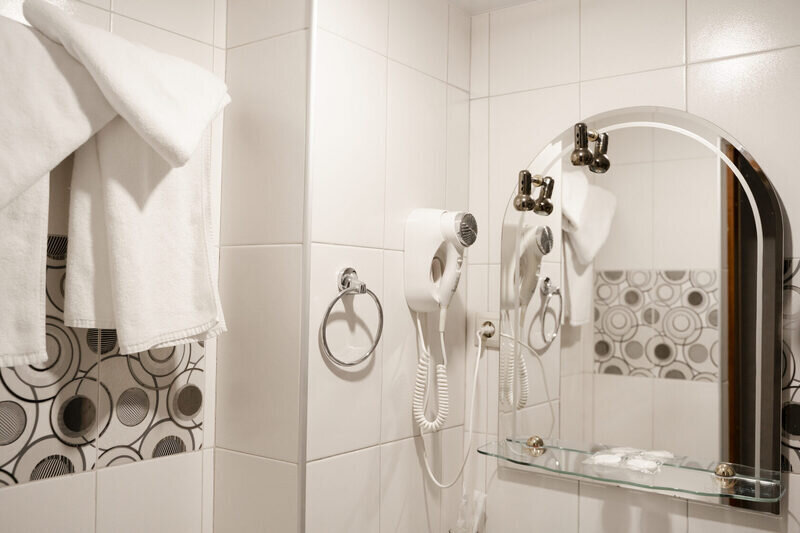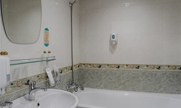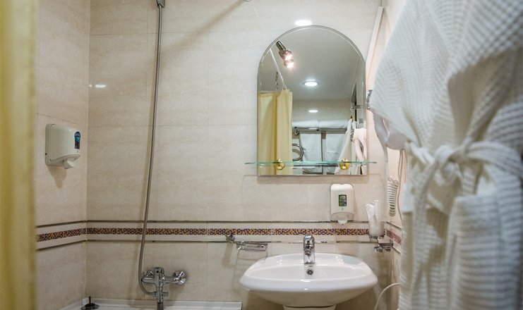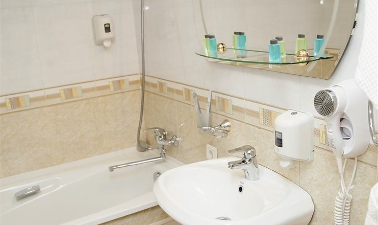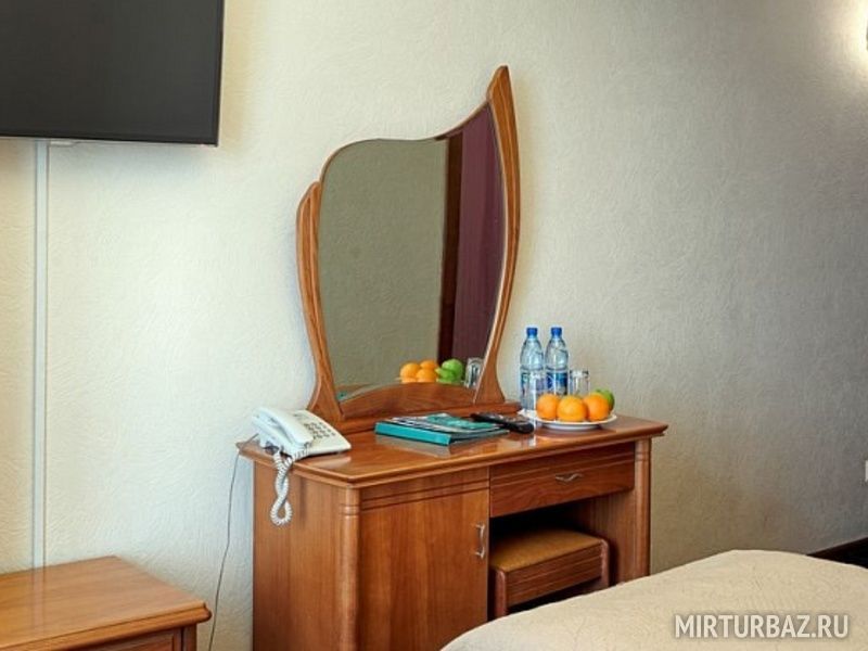 В каждом номере есть односпальная кровать, плательный шкаф, прикроватная тумба, комод, зеркало, полноценная ванная комната, трюмо с зеркалом. Номер находится в дополнительном корпусе Маячок. Лифт отсутствует.
