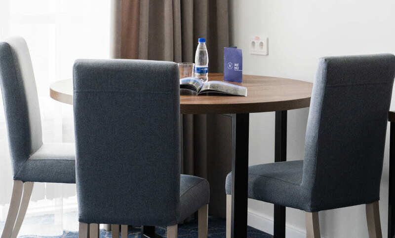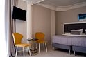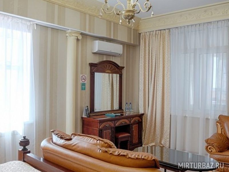 В каждом просторном и светлом Джуниор Сюит Вы найдете большую двуспальную кровать (или две раздельных), прикроватные тумбочки, трюмо с зеркалом, плательный шкаф, диван, телевизор, а также телефон, кондиционер и полноценную ванную комнату.