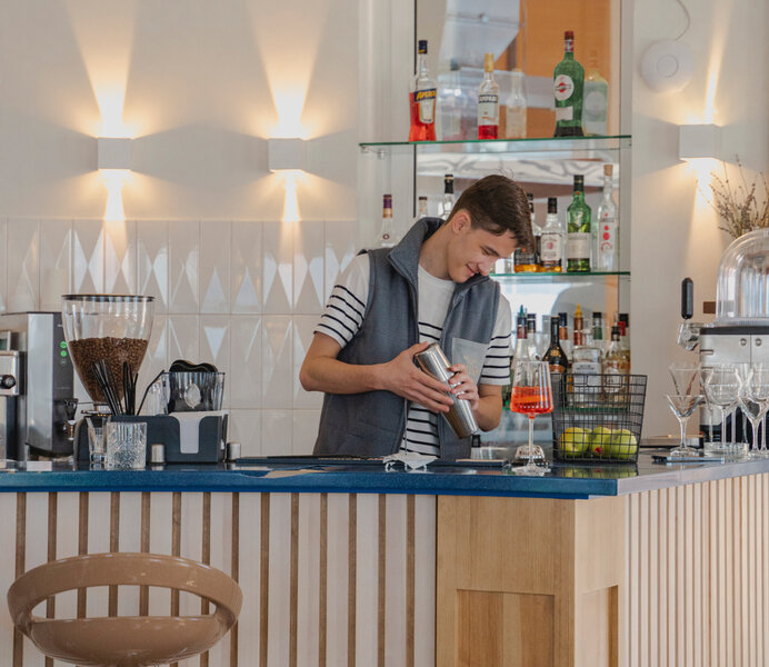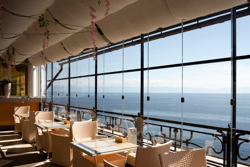 Отдыхающим предлагается завтрак по системе "шведский стол". К услугам гостей: кафе «Хинкальная № 1» с грузинской кухней, ресторан «VYЮГА» с русской и сибирской кухней, rooftop Bar Mayakovskiy с авторской кухней и с прекрасным панорамным видом на озеро Байкал. Также вам будут рады предложить услуги русской бани и сауны, воспользоваться услугами фитобочки, заказать экскурсию, помочь арендовать корабль.
