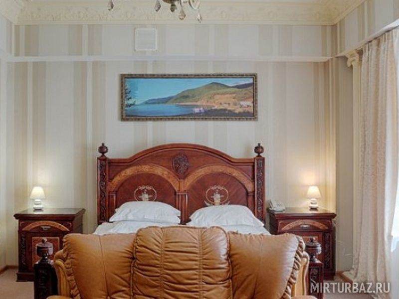 Интерьер оформлен в европейском стиле, преимущественно в пастельных тонах; ковровое покрытие высокого качества и отличный текстиль приятны и на глаз, и на ощупь. Удобная добротная мебель выполнена из натурального дерева. В каждом номере есть кровать, плательный шкаф, прикроватная тумба, стол, зеркало, полноценная ванная комната, кондиционер. Имеются номера с прекрасным видом на Байкал или на гору. Преимущества таких номеров — тишина и покой.