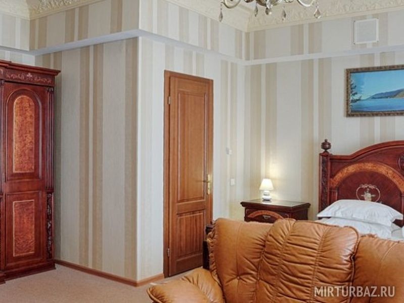 Номера обставлены шикарной итальянской мебелью, выполненной из массива дерева.