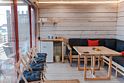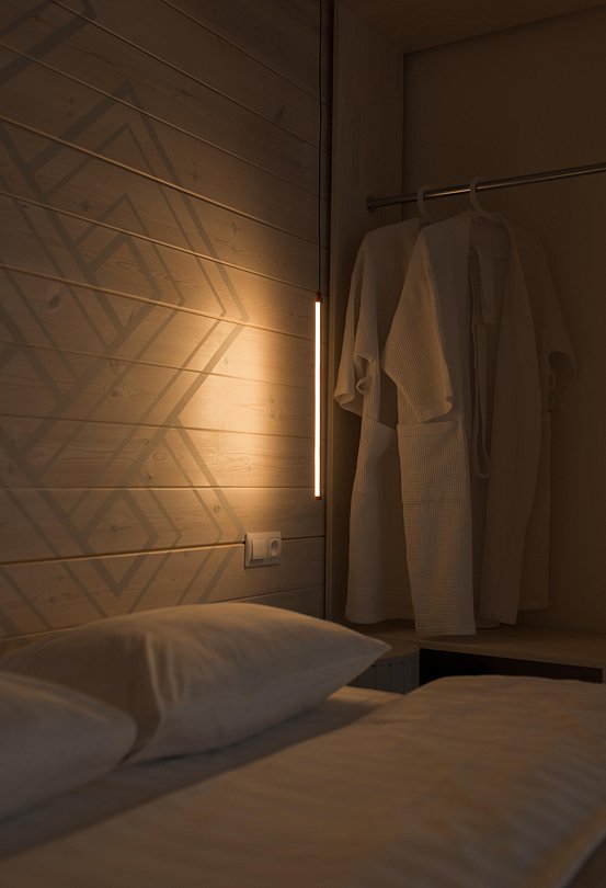 В каждом домике вместимостью до 4 человек имеется кухонная зона, оснащенная необходимой техникой для приготовления еды и набором посуды, благоустроенный санузел, веранда с видом на Байкал и зона для мангала. При проектировании домов использовался современный дизайн, дополненный элементами местной культуры.