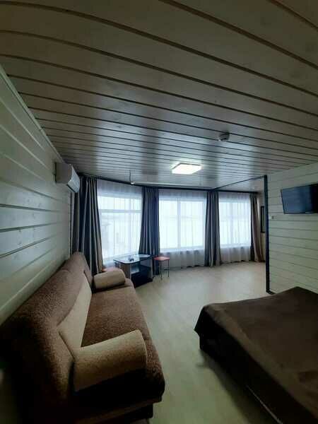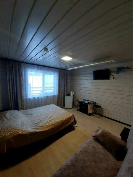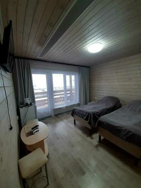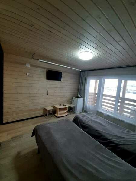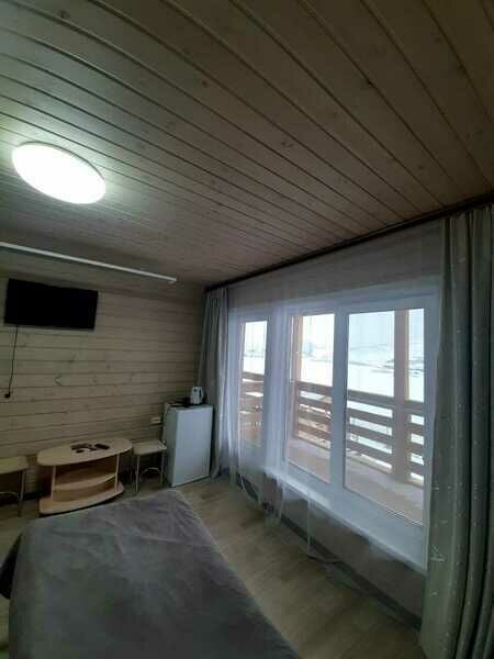 Номер с панорамным видом на Байкал (32 кв.м.) и террасой, отдельный вход в номер. В номере: санузел с душевой кабиной, двуспальная кровать и диван-кровать, плательный шкаф, зеркало, тумбочки, ЖК телевизор, мини-холодильник, чайник, чайные пары, стол, стулья.
