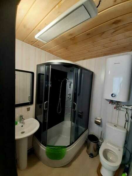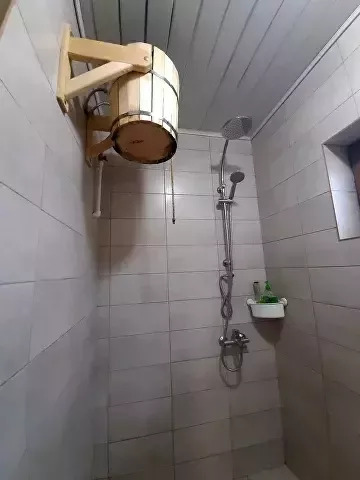 В бане большая комната отдыха с травяным чаем, сауна с влажным горячим паром, моечная с душем и ведром для обливания, санузел. В бане теплые полы.