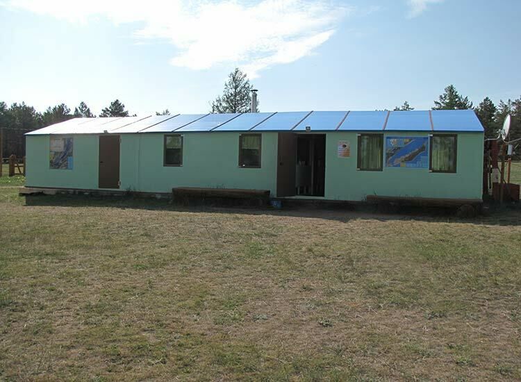 База отдыха расположена на западном побережье острова в 300 км от г. Иркутска между поселками Хужир и Харанцы, в 200 м от берега Сарайского залива.