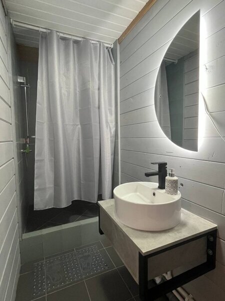 Путешествие с паройНеплохой гостевой дом.Неплохой гостевой дом. Жили в номере с удобствами, на втором этаже. В номере достаточно аскетично, не хватало телевизора, фена, большого зеркала и стаканчика для зубных щеток. В темное время не хватает света, в комнате одна лампочка. Холодильник есть на первом этаже. На завтрак были каша, омлет, блинчики/панкейки с джемом/сметаной, хлеб, масло, сыр и чай/кофе на выбор. Хозяева достаточно приветливые и вежливые. Ещё там живет очень позитивный и улыбчивый пёсель, очень хороший :)