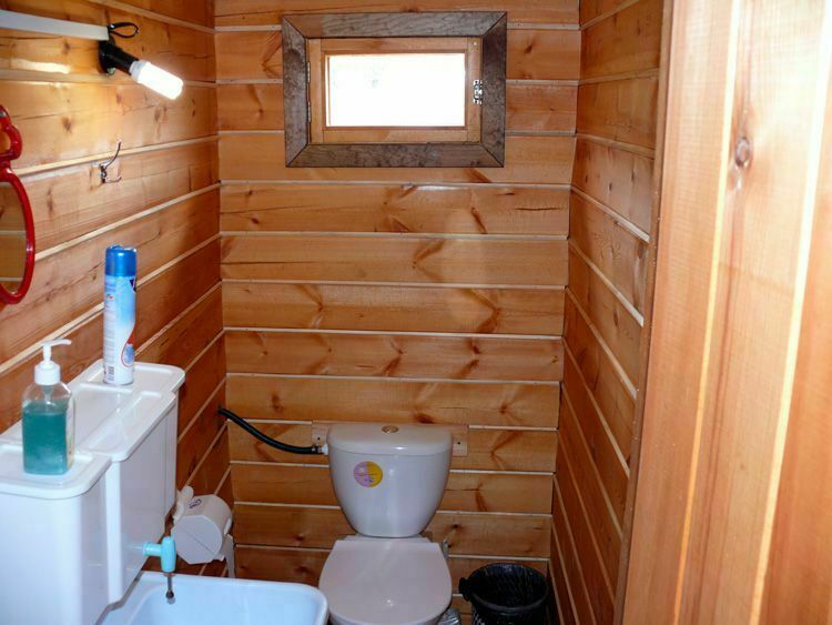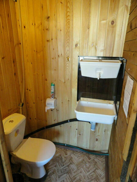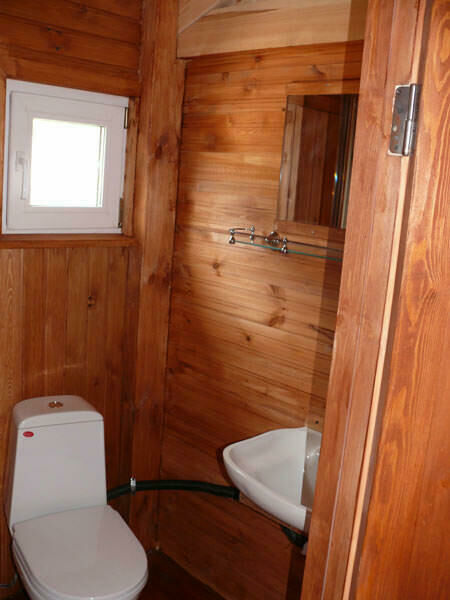 Каждая половина имеет собственный раздельный санузел, оборудована дровяной печью и электрообогревателем. Внутри установлены три деревянные кровати, TV, стол, табуреты, вешалки, зеркало, тумбочка. На веранде имеется разделочный стол, электроплитка, чайник, набор посуды.