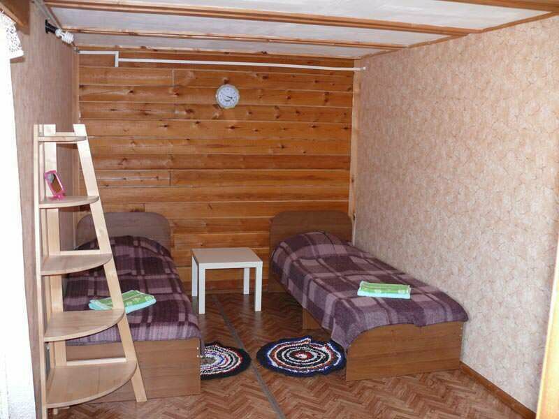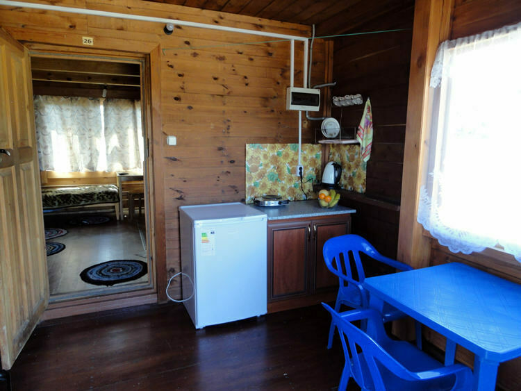 Кухня (электроплита, разделочный стол, мойка, большой холодильник, чайник, набор посуды), душевой кабиной и туалетом. В каждом номере имеется умывальник, деревянные односпальные кровати, стол, стулья, зеркало, вешалки, полки.