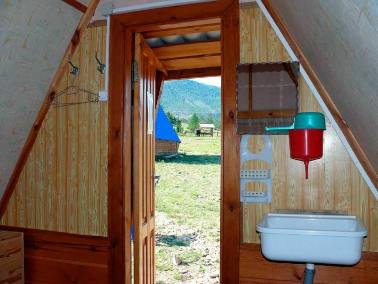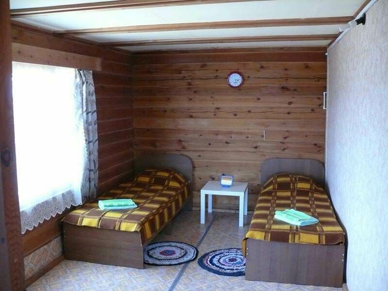 В домиках установлены две односпальные деревянные кровати, которые можно установить как вместе, так и раздельно, умывальник со стоком, зеркало, стол, стулья, вешалки. Туалет и бесплатный тёплый душ на территории.