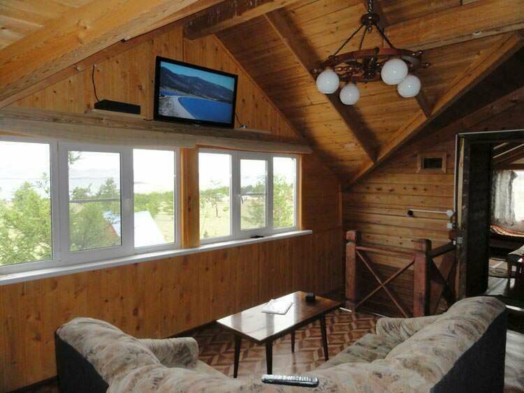 Номера второго этажа имеют общий холл и объединены в отдельное от номеров первого этажа помещение на двух уровнях. Очень удобно для размещения одной дружной компании! Общий для шести 2х и 3х-местных номеров холл оборудован диваном, столом, телевизором со спутниковой антенной и с возможностью подключения через USB внешнего диска с фильмами и музыкой. Из окон холла открывается великолепная панорама с видом на Байкал, Ольхон и острова Малого моря Борокчин и Огой.