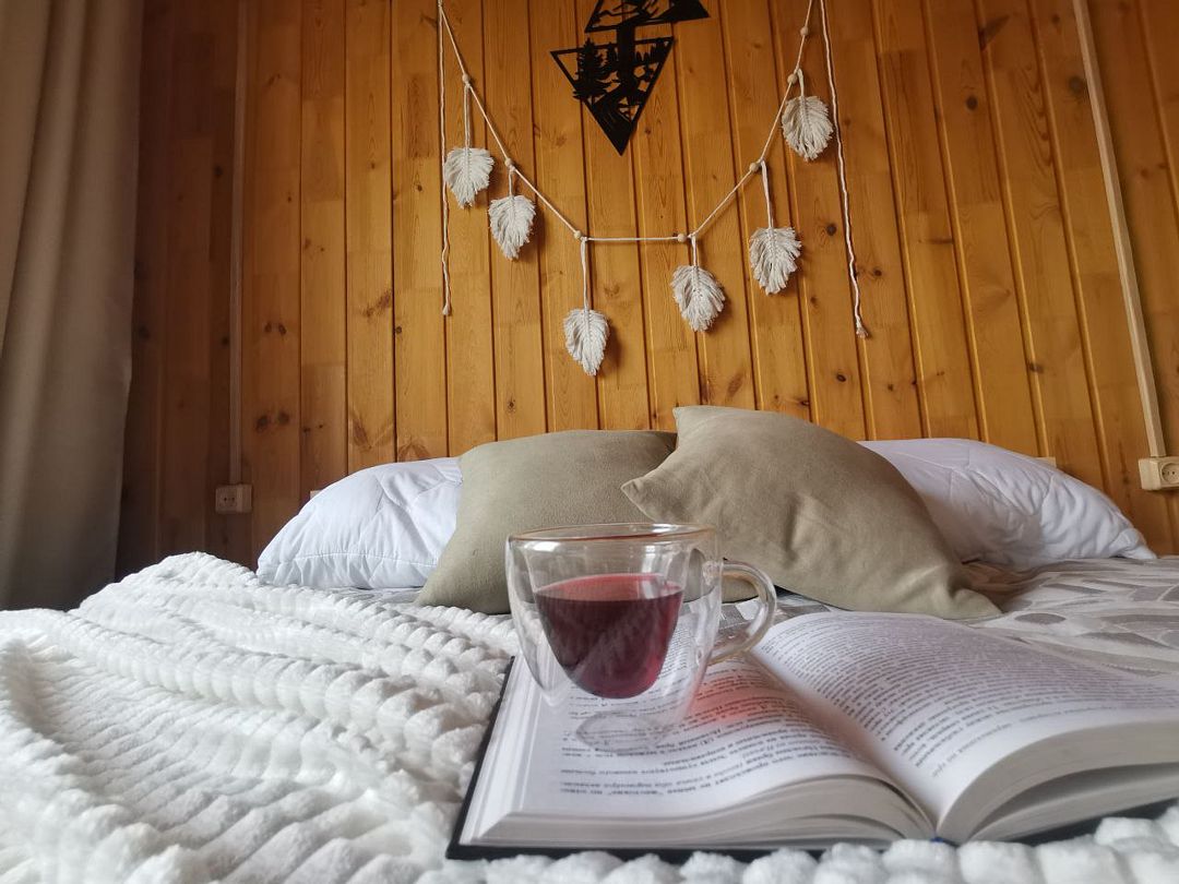 - Милые стеклянные кружки необычной формы, плюшевый плед и декоративные подушки: Маленькие детали, которые делают пребывание еще приятнее.