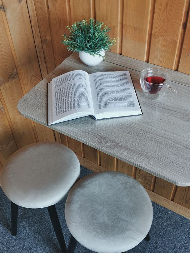 - Столик для удаленной работы с мягкими стульчиками: Работайте с комфортом, даже вдали от дома.