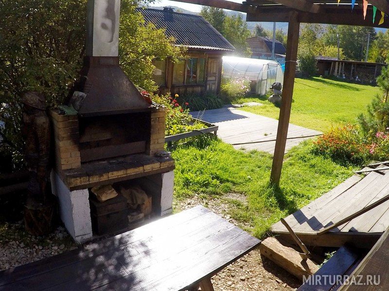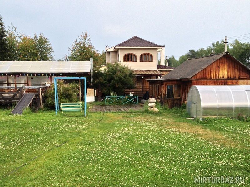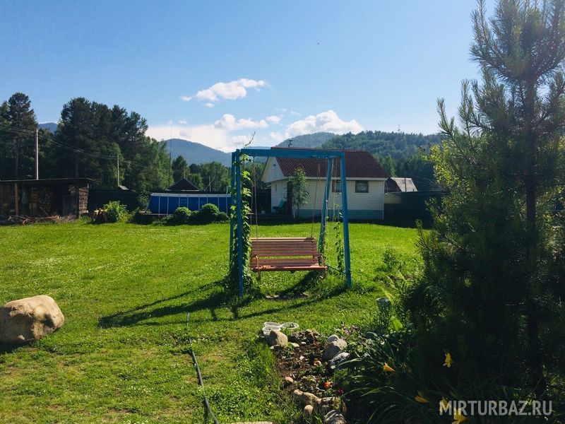 В деревянном благоустроенном коттедже есть 4 спальни, из окон которых открывается потрясающий вид на снежные горы. Также есть большая столовая, каминный зал, кухня, душ и два туалета. Комфортно здесь отдыхать компанией до 20 человек. Для релаксации можно посетить жаркую баньку, провести время в беседке, приготовить рыбу на мангале или в коптилке. Зимой здесь можно насладиться белыми сугробами, построить горку для детей и покататься на коньках. Летом устанавливается большой бассейн для взрослых и маленький для детей, а также заботятся о поляне с одуванчиками.