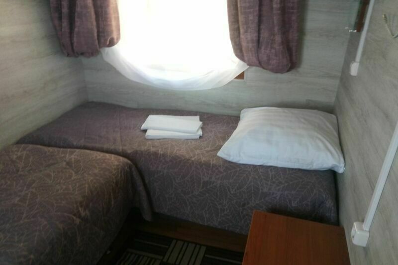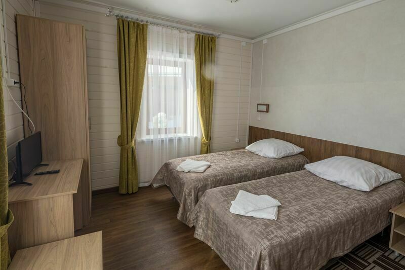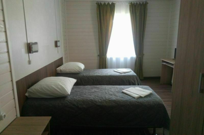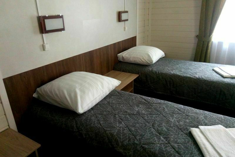 В номерах: односпальные кровати, шкафы, тумбочки, стулья, с/у.
