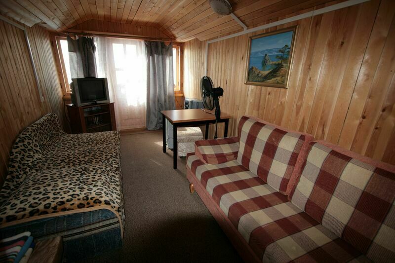 Кухня, совмещенная с прихожей, умывальник. В комнате: софа, 2-х местный диван, ковровое покрытие, телевизор, тумбочки, есть балкон - вид на Байкал.