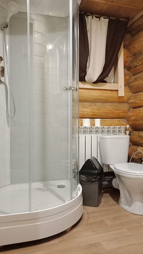 В коттедже - гостиная, кухня, 2 сан. узла, 2 душевые кабины.