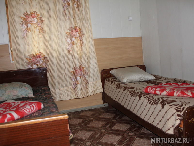 Отдельно-стоящий благоустроенный домик с двумя двухместными номерами, верандой телевизаром и холодильником. 1 номер: двуспальная кровать, телевизор. 2 номер: две односпальные кровати.