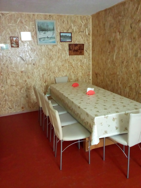 Находится в двухэтажном доме состоящем из 4-х номеров с видом на Байкал. В каждом номере двуспальная кровать+односпальная, белье, обеденный стол, эл. чайник, посуда, общая веранда на первом этаже и на втором.