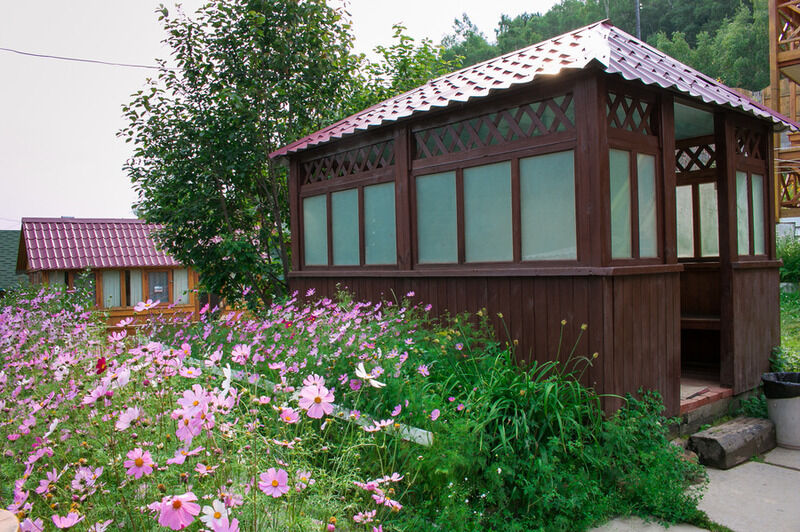 На территории имеется уютная деревянная беседка для отдыха на свежем воздухе.