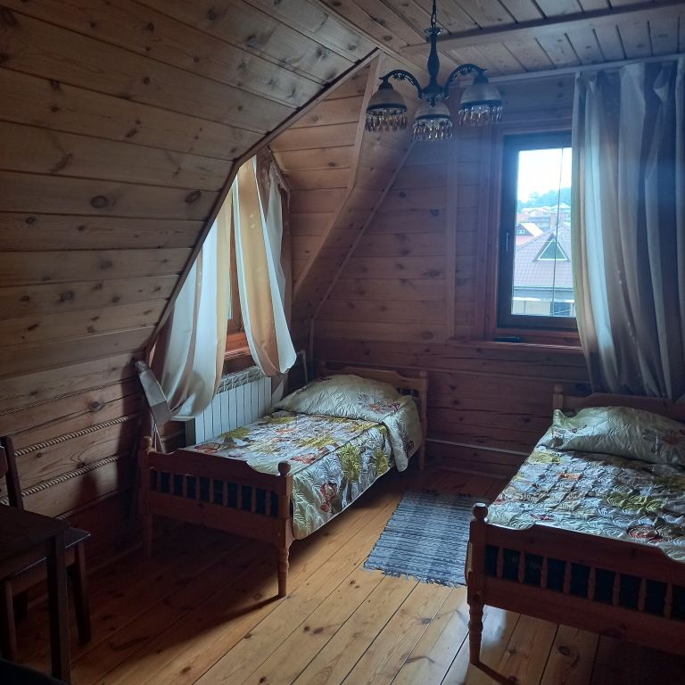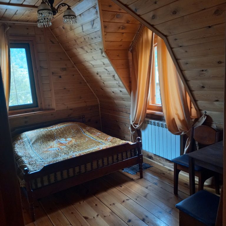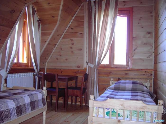 Гостиница полностью выполнена из дерева и предлагает уютное размещение для 20 человек. В номерах имеются умывальники и теплые туалеты, а на всей территории доступен WI-FI. Для удобства гостей предусмотрена автостоянка во дворе.