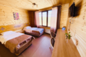 Номера выполнены с максимальным использованием натуральных природных материалов. Каждый номер оснащен телевизором, чайником, тумбочками, шкафом, собственной ванной комнатой. Из окна каждого номера открывается прекрасный вид на Байкал и Сарайский пляж.