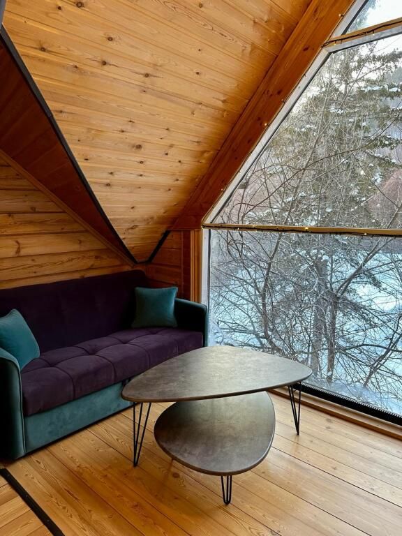 Шале «У Иваныча» с садом, сезонным открытым бассейном и видом на горы находится в поселке Листвянка.