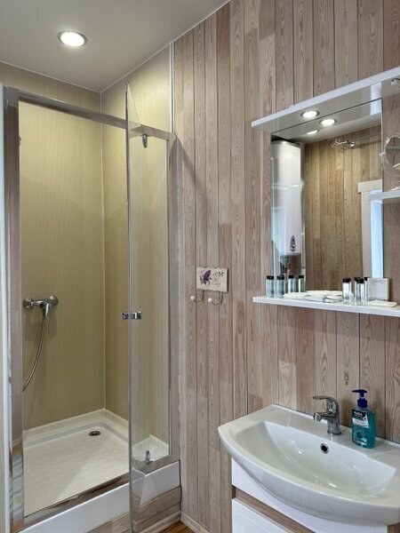 Короткий отпуск с друзьямиОчень понравилосьОтличные, чистые, ухоженные домики. Завтрак подается рядом в кафе, вечером заполняешь форму, с утра с 8-30 до 10 завтрак, и потом кафе превращается в ресторан, и работает с 10-22. На завтрак на выбор каша или омлет, колбаса или сыр, масло, творог, кефир, молоко, чай/кофе (нормальный надо покупать кофе), хлеб