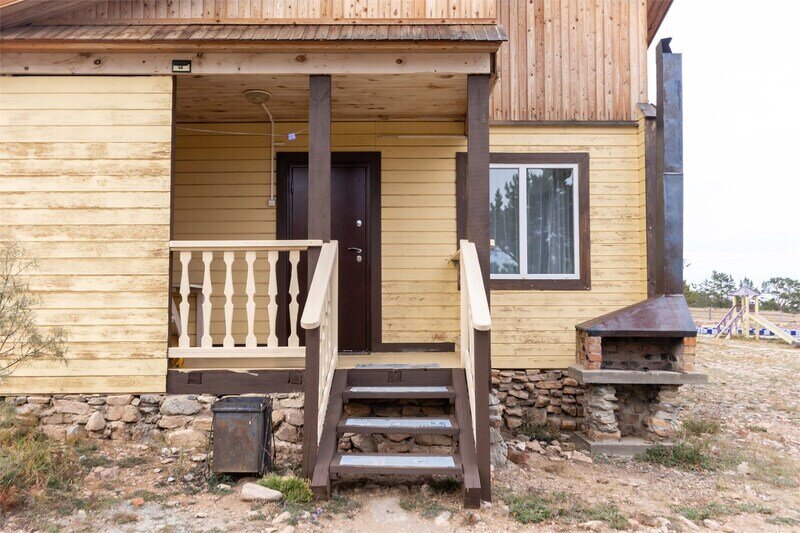 Номер в 2-х этажном корпусе, выход с коридора на балкон с видом на Байкал, за корпусом есть беседки для барбекю, в санузлах теплые полы, зоны кухни оснащены индукционной плиткой, посудой для приготовления еды и чая.