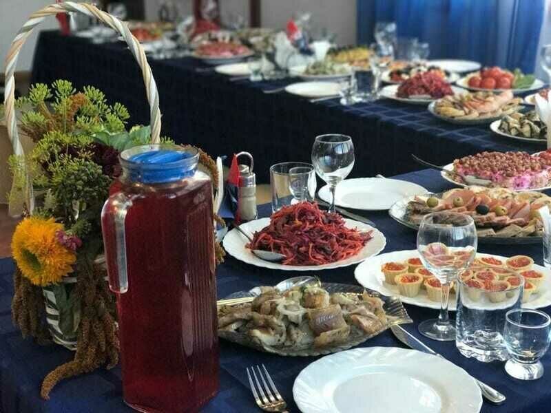 Стоимость — от 15000 ₽ (установка шатра) + 5000 ₽/человек (по меню).