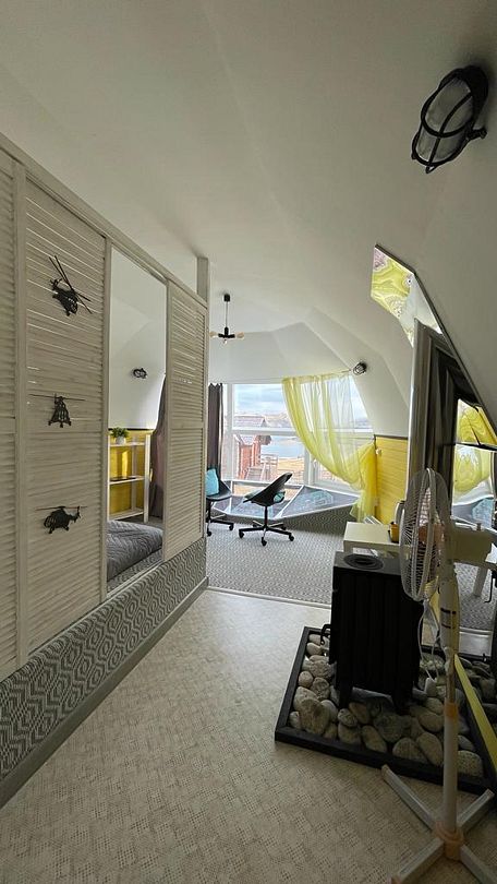 Одноэтажный дом, выполненный в виде подводной лодки.