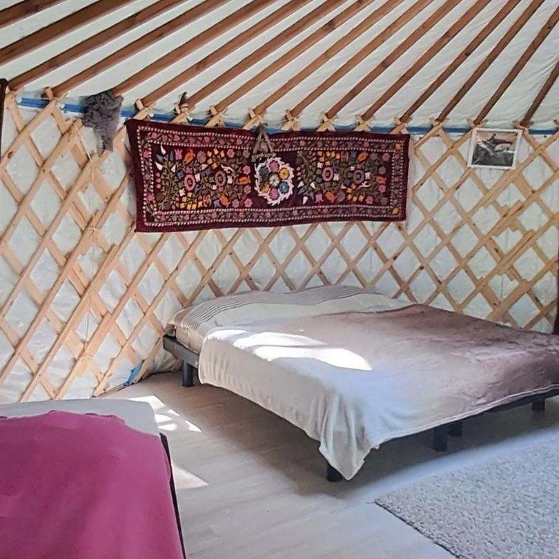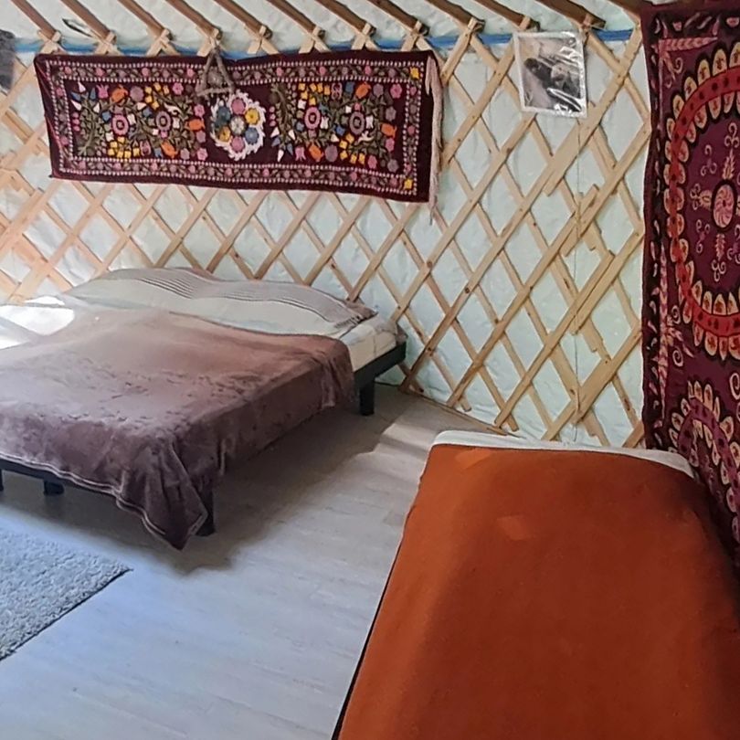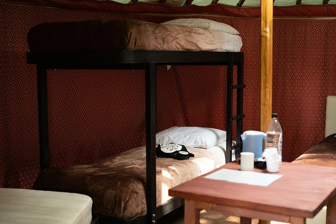 Две односпальные кровати, одна двуспальная кроватьВ глэмпинге